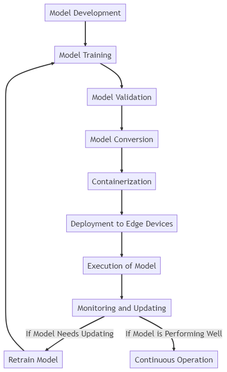 Monitoring and Updating: The performance of the deployed model is continuously monitored, with updates or retraining triggered as needed.